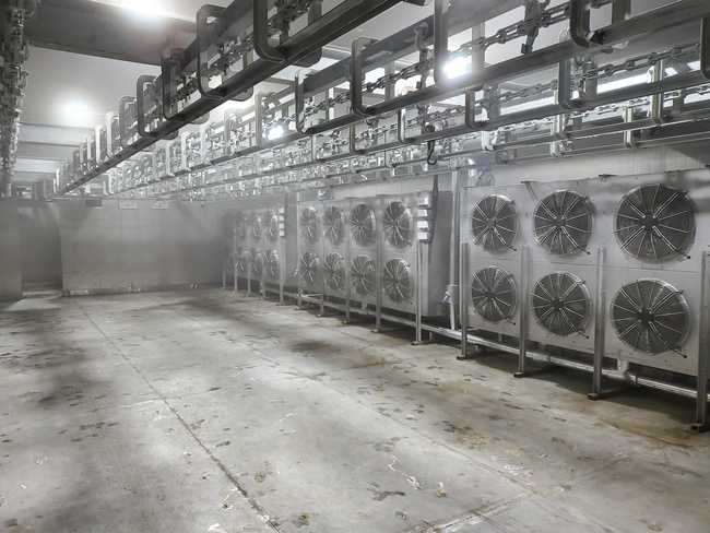 速凍冷庫通常在預冷庫之后,通常食品經處理預冷后在速凍冷庫冷凍。