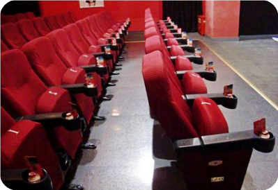 在電影院的座椅上的養(yǎng)樂多和宣傳卡
